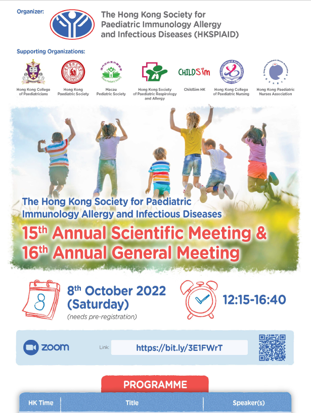 The Hong Kong Society for Paediatric Immunology Allergy and Infectious Disease(HKPIAID) ASM (8 Oct 2022)