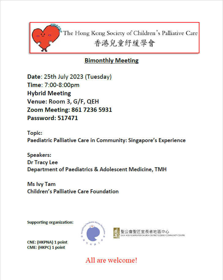Hong Kong Society of Children's Palliative Care - Bimonthly Meeting (25 July 2023)