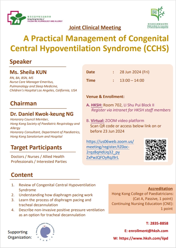 HKSPRA - Joint Clinical Meeting: A Practical Management of Congenital Central Hypoventilation Syndrome (CCHS) (28 June 2024)
