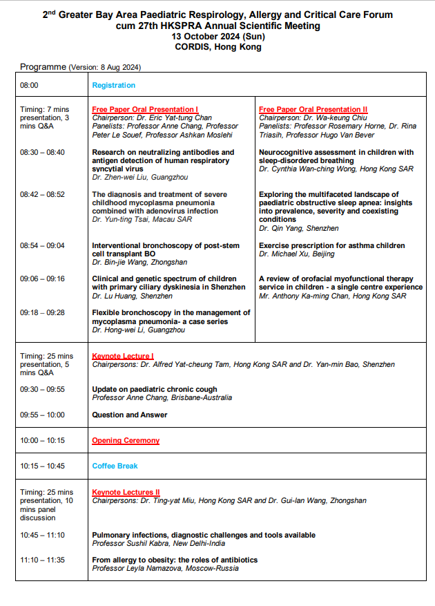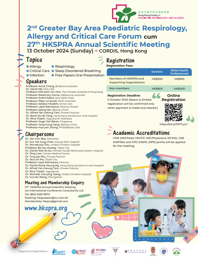 HKSPRA - 2nd Greater Bay Area Paediatric Respirology, Allergy and Critical Care Forum cum 27th AGM (13 Oct 2024)