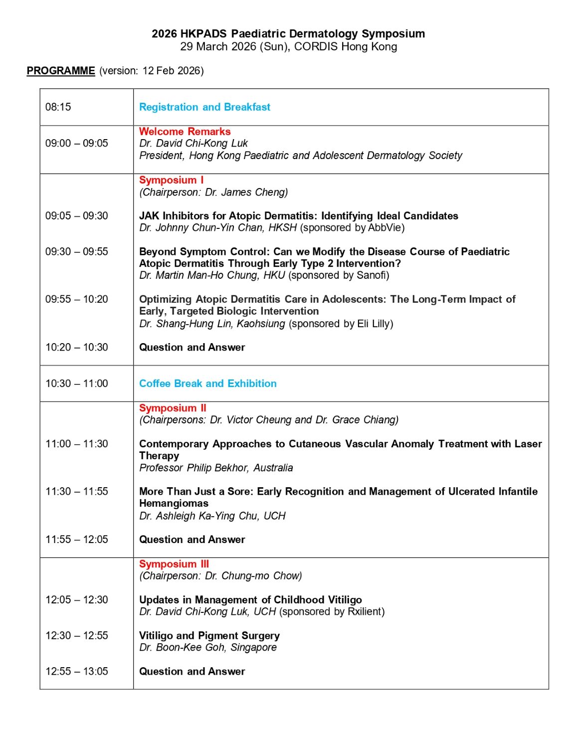 2026 HKPADS Paediatric Dermatology Symposium (29 Mar 2026)